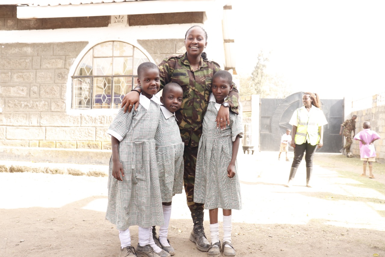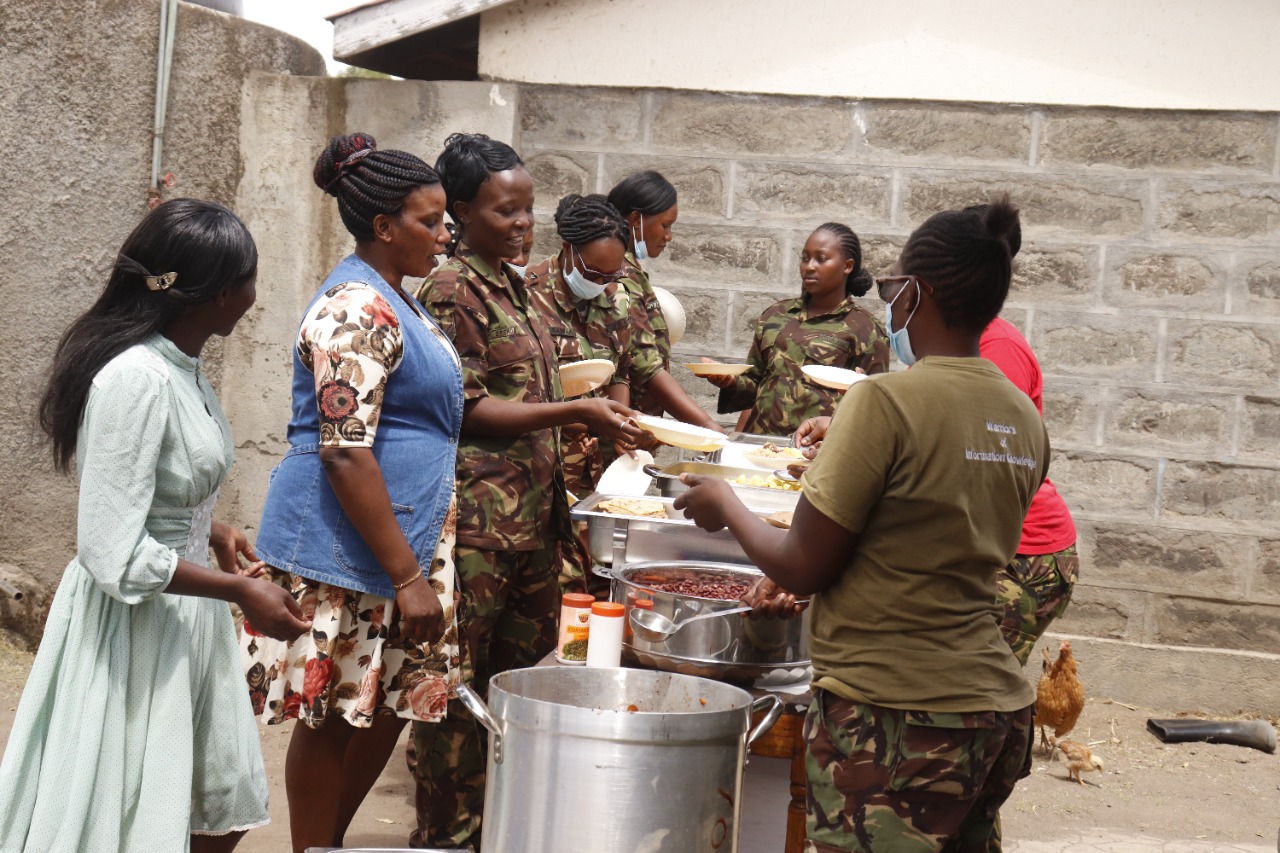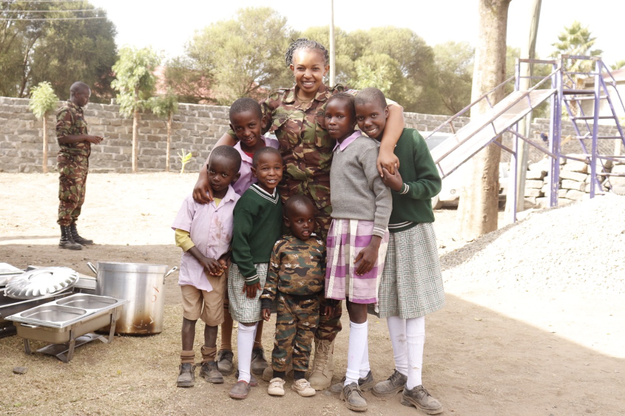 - The Officer Commanding Major Winstead Nyongesa thanked the institution management for the work they were doing in supporting the needy children, for allowing them to pay them a visit and for accepting the donations towards putting a smile on the faces of the young ones. The soldiers spent quality time playing with the children, prepared a meal for them and interacted in song and dance during the visit. They also urged the children to work hard and succeed, indicating that their background does not dictate their future.